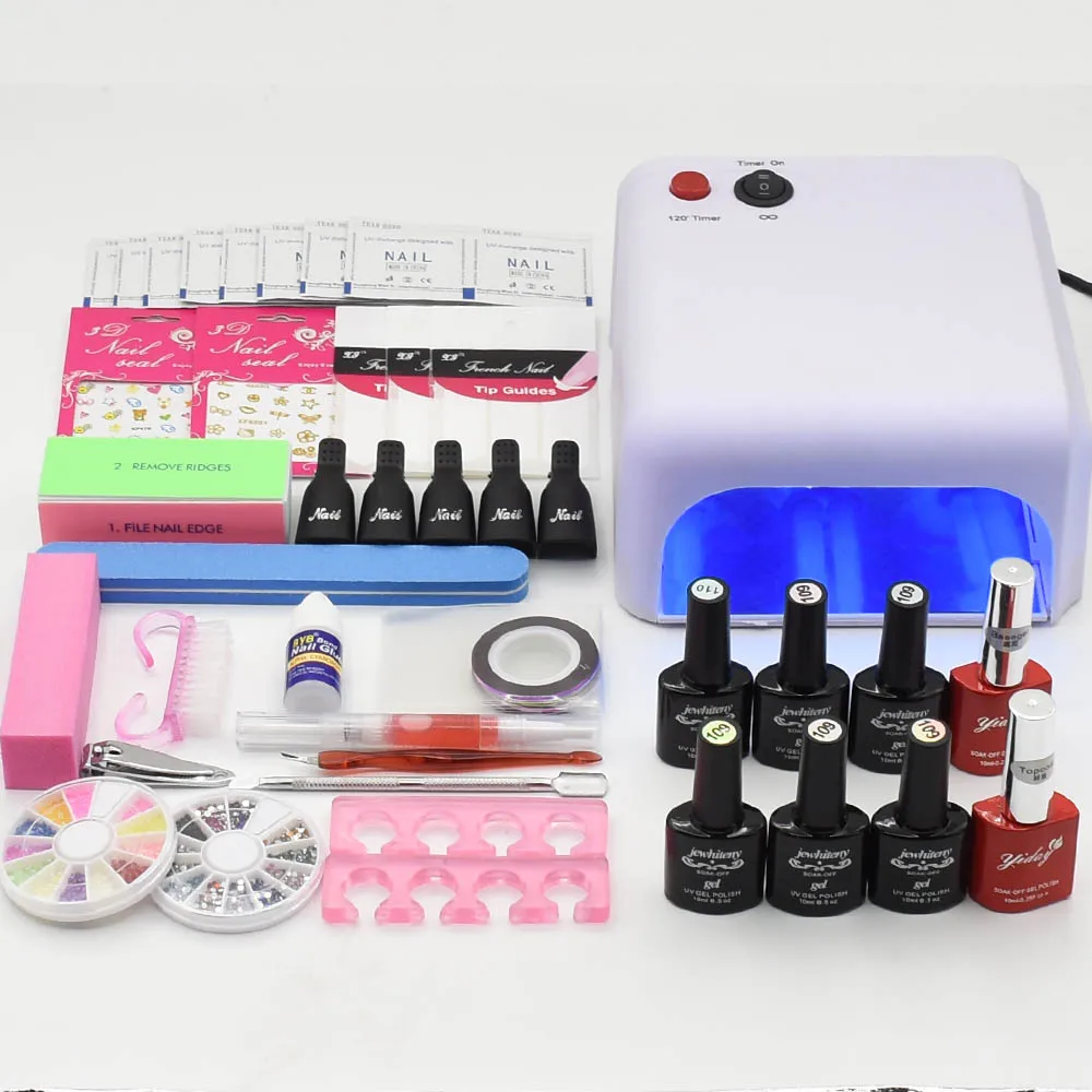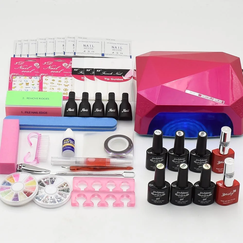 Купить Ногтей маникюрные инструменты УФ светодио дный лампы ногтей сушилка 6 12 Цвет 10 мл База top coat soak off Гель лак для ногтей комплект комплекты Продажа Дешево.