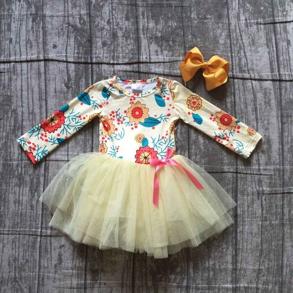 Купить Новые поступления осень для маленьких девочек детей Изысканная одежда цветочный цвета слоновой кости без рукавов с бантом Хлопковое плать... Цена Дешево
