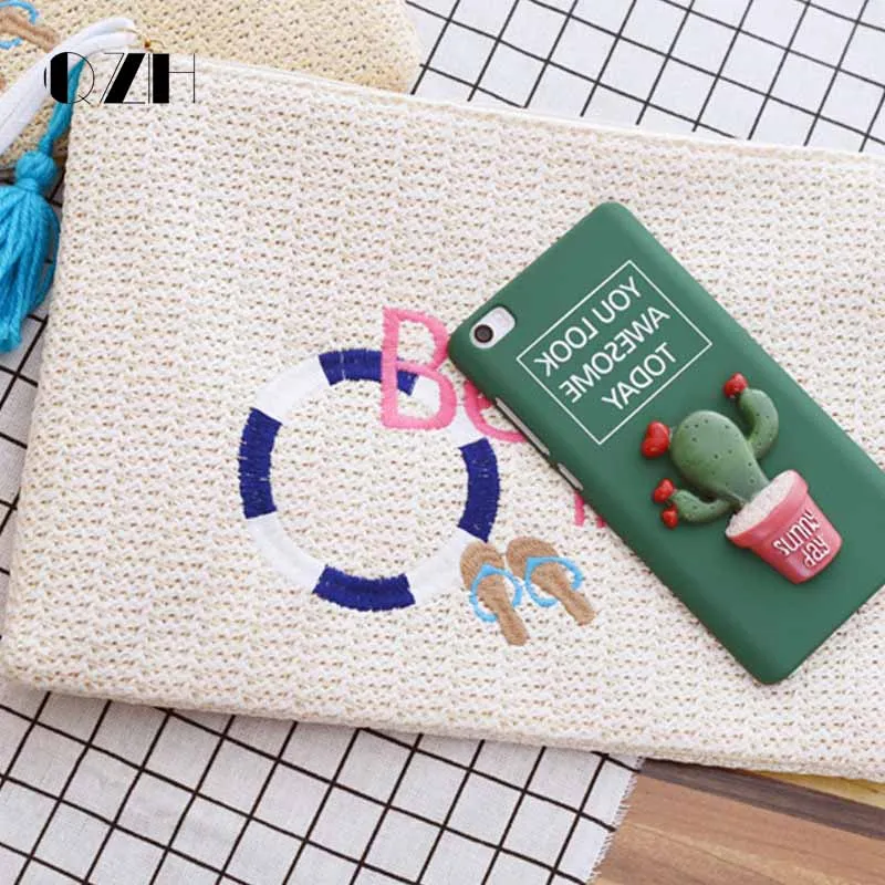 Купить Для женщин косметичка летняя Соломенная пляжная сумка женский макияж Красота Организатор дамы смайлик cometic сумки кисточкой Косметика сумк... Продажа Дешево