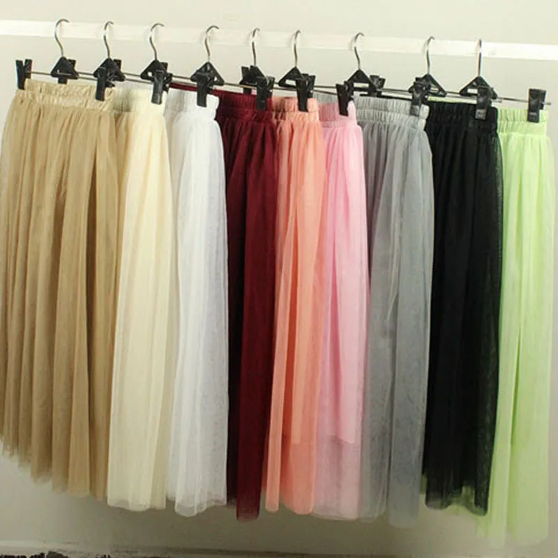 Купить Горячая Тюль юбки Новинки для женщин летние Повседневное Высокая талия длинная юбка эластичный пояс солнца пушистый юбка пачка Jupe Longue Femme ... Продажа Дешево