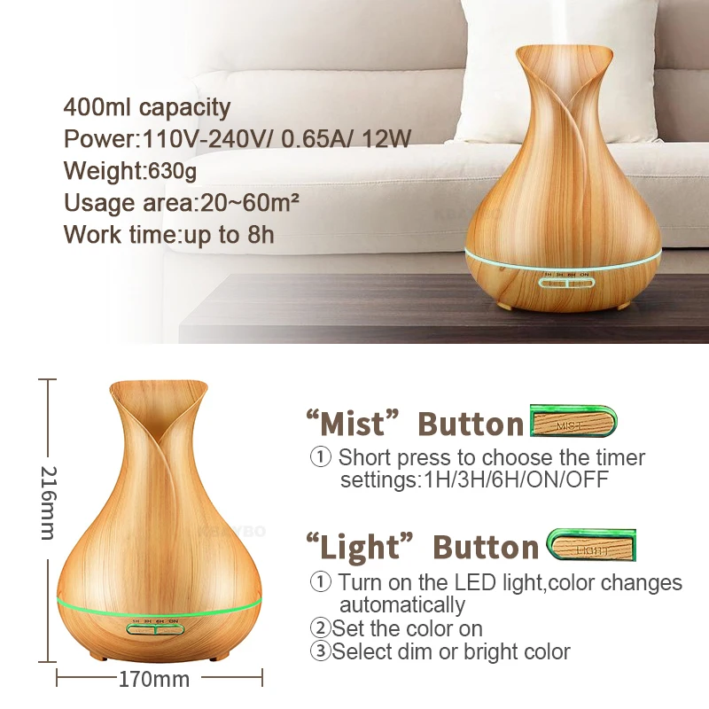 Купить KBAYBO 400 мл Аромат эфирного масла диффузор ультразвуковой увлажнитель воздуха Электрический светодиодный свет Арома диффузор для дома с под ... Продажа Дешево