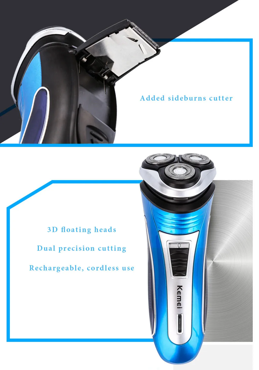 Купить Kemei В электробритва в перезаряжаемые 220 3D тройной плавающим лезвием головок бритья устройства уход за лицом для мужчин триммер для бороды Продажа Дешево.