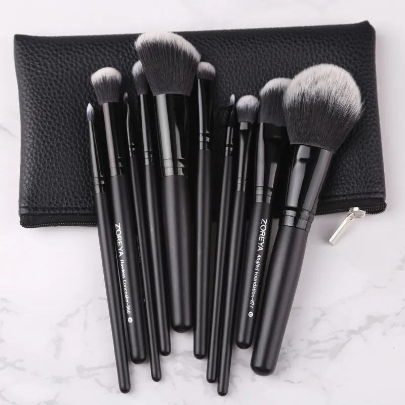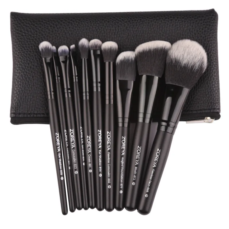 Купить ZOREYA 10 шт. черный классический макияж расчёски для волос с высокое качество синтетические волосы Основа макияжа лица румяна набор кисточек д... Цена Дешево