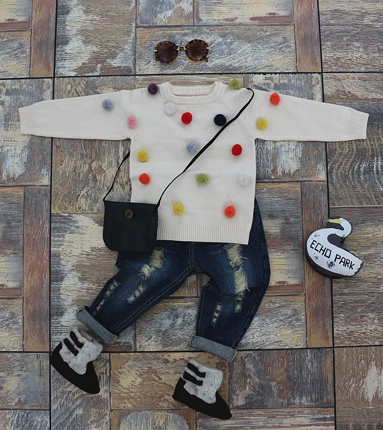 Купить 2017 для малышей осенние свитеры для мальчиков и девочек трикотажные Пуловеры для женщин шариками детская верхняя одежда свитер для мальчико... Продажа Дешево.