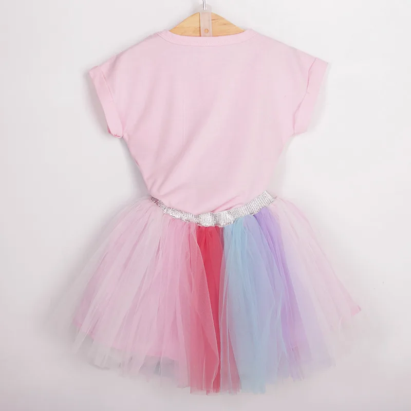 Купить Сутон для маленьких девочек 2018 новый комплект сезон весна ndash;лето хлопок мультфильм платье Единорог розовая футболка + кружева красочные пла... Цена Дешево