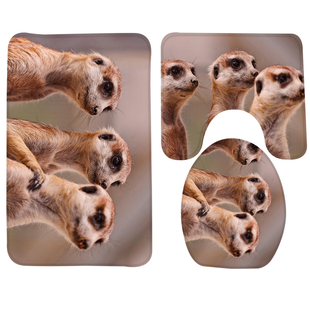 Купить 3 шт. Ванная комната Коврики комплект три коричневый Сурикаты Товары для ванной нескользящие Для ванной Коврики туалет Коврики Продажа Дешево