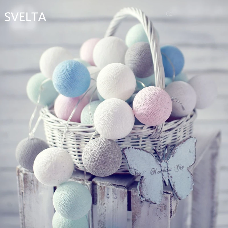 Купить SVELTA Gerlyanda 6 см хлопковый шар 20 лампы светодио дный гирлянды светодиодные огни Рождество Свадьба Праздник аксессуары Фея Света гирлянда бата... Продажа Дешево