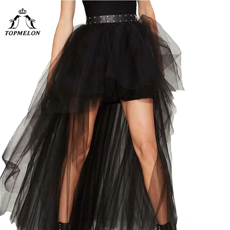Купить TOPMELON женская панк юбка Женский Готический Тюлевая юбка лето стимпанк длинная юбка бальное платье черная сетка показывает танцевальные юбк... Продажа Дешево.