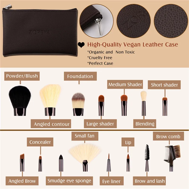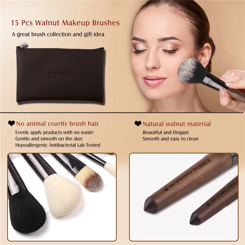 Купить Zoreya бренд 15 шт. грецкий орех синтетические волосы макияж кисти губы лайнер тональный крем Макияж Кисти Инструменты Необходимые Наборы Продажа Дешево