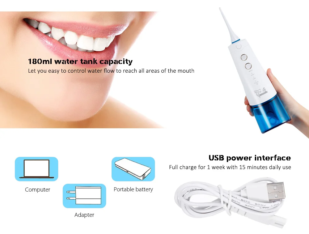 Купить 180 мл беспроводной зубной полости рта спа ирригатор струей воды Flosser уход за полостью рта перезаряжаемые зубы палочки очиститель зуб спа бел... Продажа Дешево