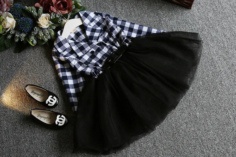 Купить AiLe Rabbit девочек платье пачка Демисезонный длинный рукав Детская одежда в клетку кружевное платье Детская одежда k1 Цена Дешево