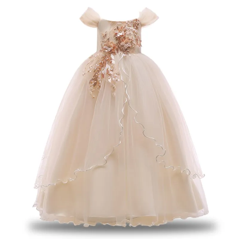 Купить Малыш Девушка принцесса свадебное кружевное платье с цветочным рисунком детская Платье для первого причастия девочек жемчужные лепестки б... Продажа Дешево.