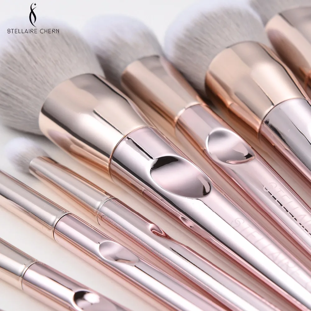 Купить SC Pro 12 шт. Металлические кисти для макияжа Набор Розовое золото лицо тональная Пудра Тени для век Румяна Макияж Кисти набор для макияжа губ Цена Дешево.