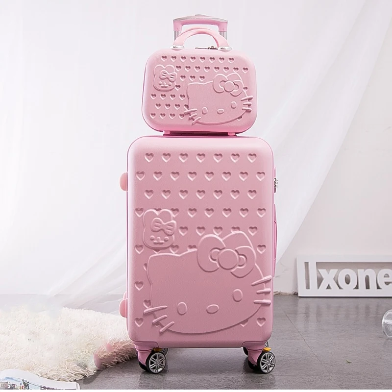 Купить 2 шт. компл. прекрасный 14 дюймов косметичка hello Kitty 20 24 дюйм(ов) Молодежные тележки случае багаж женщина прокатки чемодан Цена Дешево.