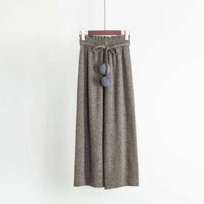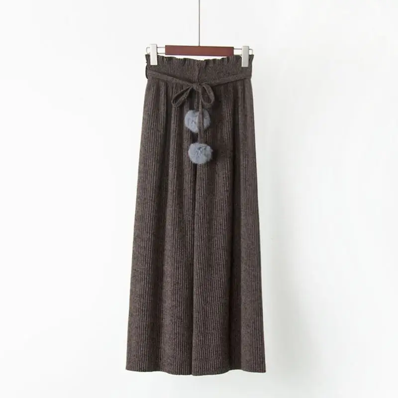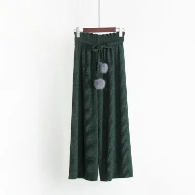 Купить Осень 2018 г. Новинка зимы Корейская версия шерстяные плиссированные широкие брюки высокая талия пояс волос шары штаны Свободные девять точе... Продажа Дешево