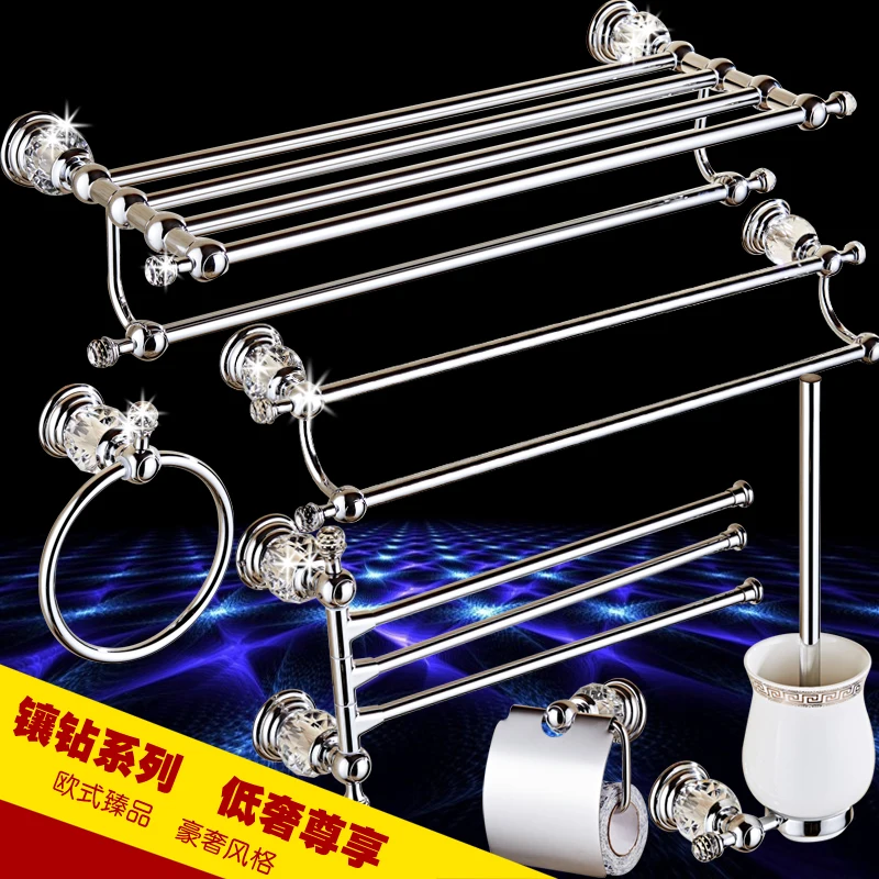 Купить Античная Аксессуары для ванной комнаты Кристалл твердая латунь наборы ухода за кожей Chrome серебро Туалет кисточки держатель гальваническим Цена Дешево