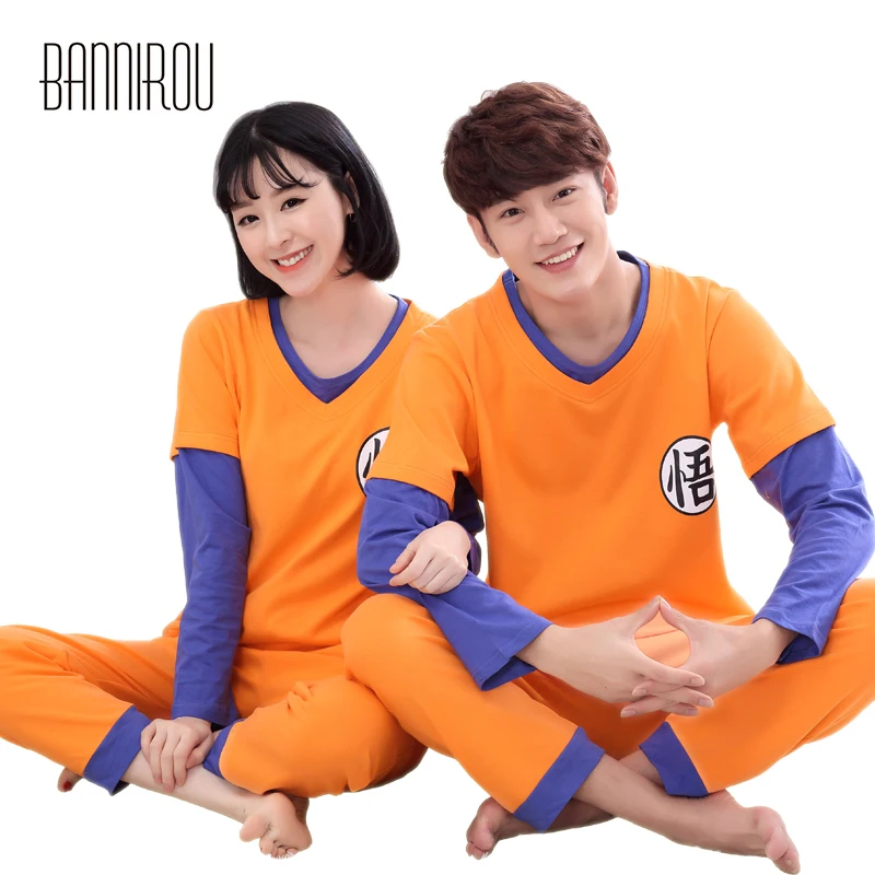 Купить Пара Соответствующие пижамы хлопковые комплекты Косплэй Оранжевый Dragon Ball Полный Круглый Средства ухода за кожей Шеи домашняя одежда для вл... Продажа Дешево.
