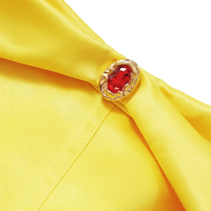 Купить MUABABY Девушки Belle Платье Костюм принцессы дети с открытыми плечами Многоуровневая Желтый Вечерние бальное платье карнавальный детский Плать... Цена Дешево